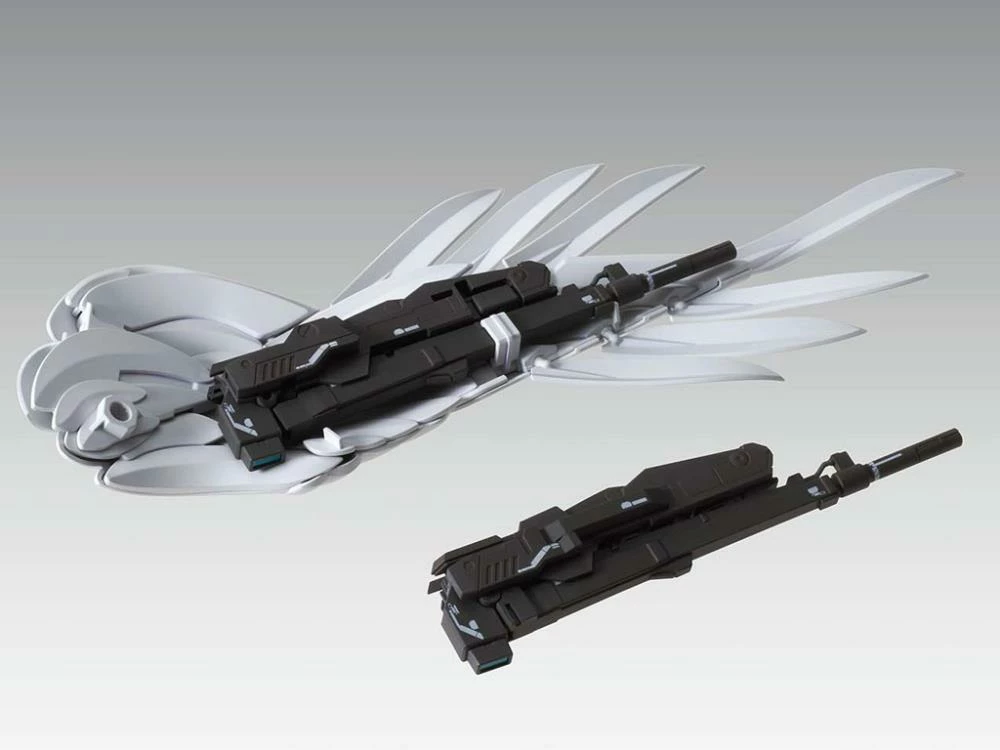 The model has been created under the full supervision of Hajiome Katoki and features new molding. Each of the joints went through an intense examination to recreate the unfolding and interactive gimmicks for the white wings and firing poses. An incredible new feature allows the Twin Buster Rifle to be stored in the wings, and the transformation into the Neo Bird Mode has been recreated.