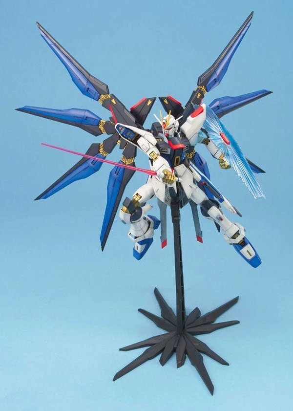 Strike Freedom Gundam, arguably the most popular mobile suit from the Gundam Seed Destiny anime series, finally gets the Master Grade treatment! This MG kit of Strike Freedom Gundam comes with the same fantastic detail, high quality, and super posability that MG builders would come to expect from Bandai. Strike Freedom Gundam comes armed with its trademark weaponry including the high energy beam rifles, Super Lacerta beam sabers, beam shield, Xiphias rail guns, and its most distinct and powerful weapon of all, the Super Dragoon mobile weapon wings that can extend and detach from the main wing frames. As usual, stickers and custom decal markings are provided along with a custom display base.