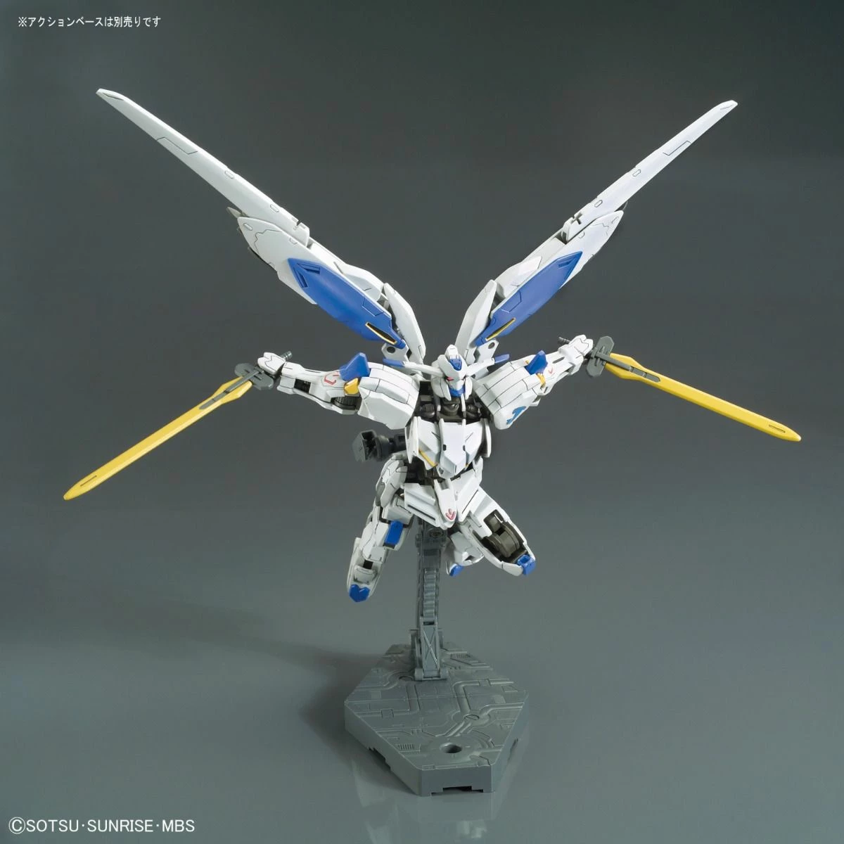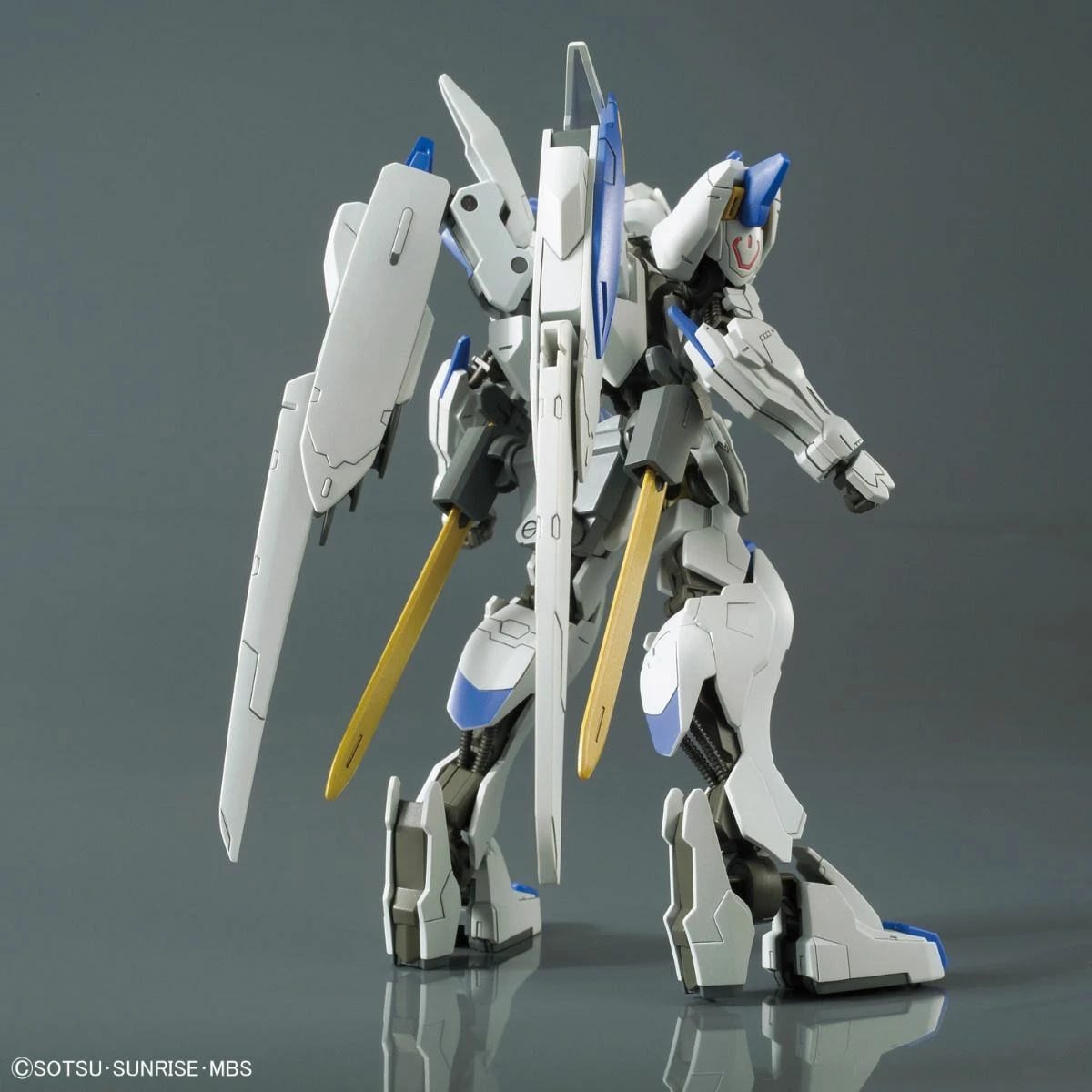 Based on the Mobile Suit Gundam Iron-Blooded Orphans anime, this Gundam Bael model kit is in the 1/144 scale and becomes a fully articulated figure once built.