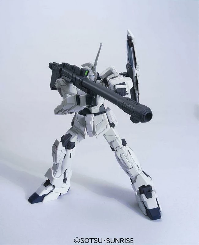 This HG rendition of the standard version of Unicorn Gundam features great poseability thanks to new gimmicks in the main joints. The kit includes 2 beam sabers, a hyper bazooka, and shield, as well as extra hand parts for more posing options.