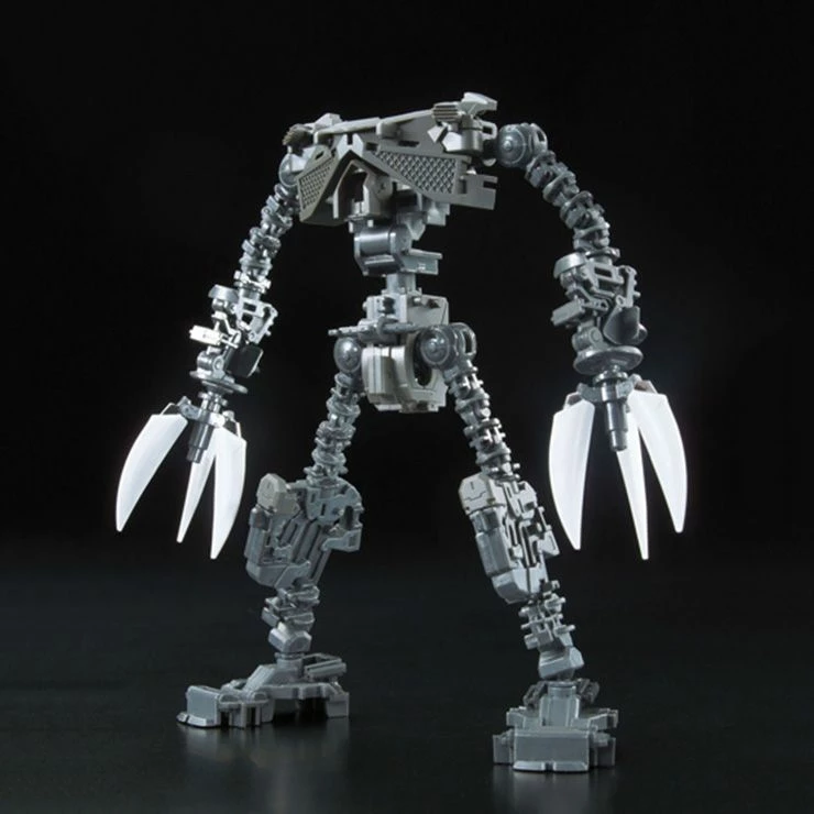 Realizes the streamline form in order to reduce the friction of water and speed up. Its unique interior frame is designed for an amphibious MS to dive into water or fight battles on the ground. It is realized with advanced MS joints. Sonar to search and detect enemies, and measure objects under water is adopted. Considering going under water and surfacing, the weep holes are molded throughout the whole body. The cockpit is designed spherically for waterproof and pressure resistance. Claws on its arms, which are the most characteristic weapon, are designed in the image of well honed sword. The propellers in its legs and back pack are recreated. They make it possible to move to various directions under water.